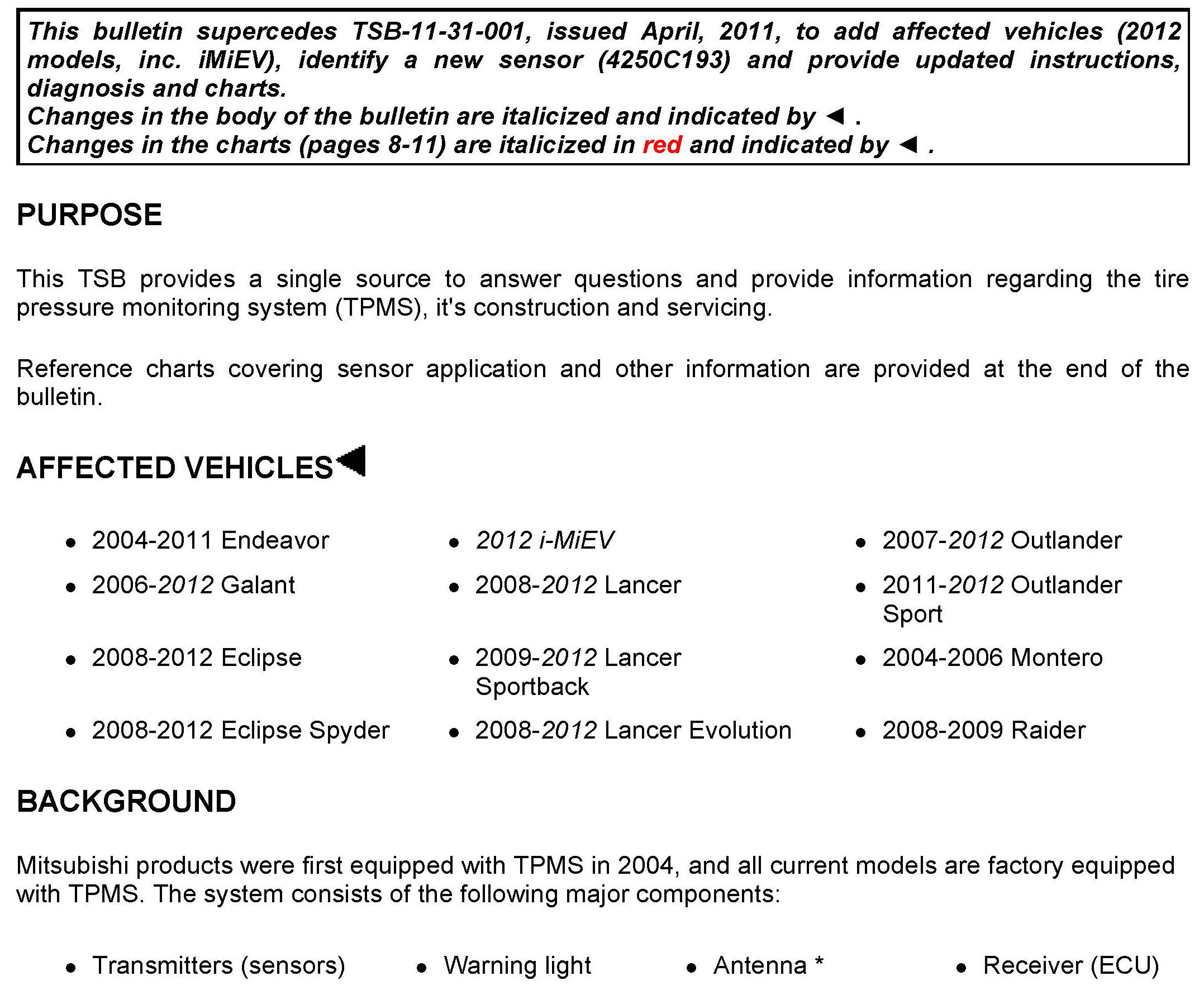 No: TSB-12-31-001