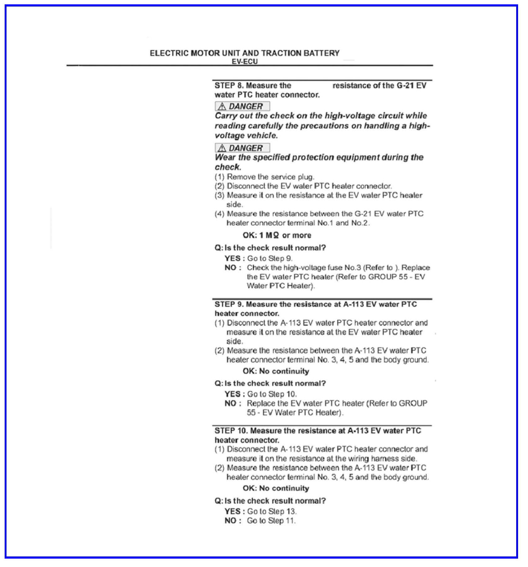 This TSB provides revised trouble shooting procedures for EV-ECU diagnostic codes P0AA1, P0AA4, P0AE2, P1A15, P1A16, P1A17, P1A26, and P1AF2.
