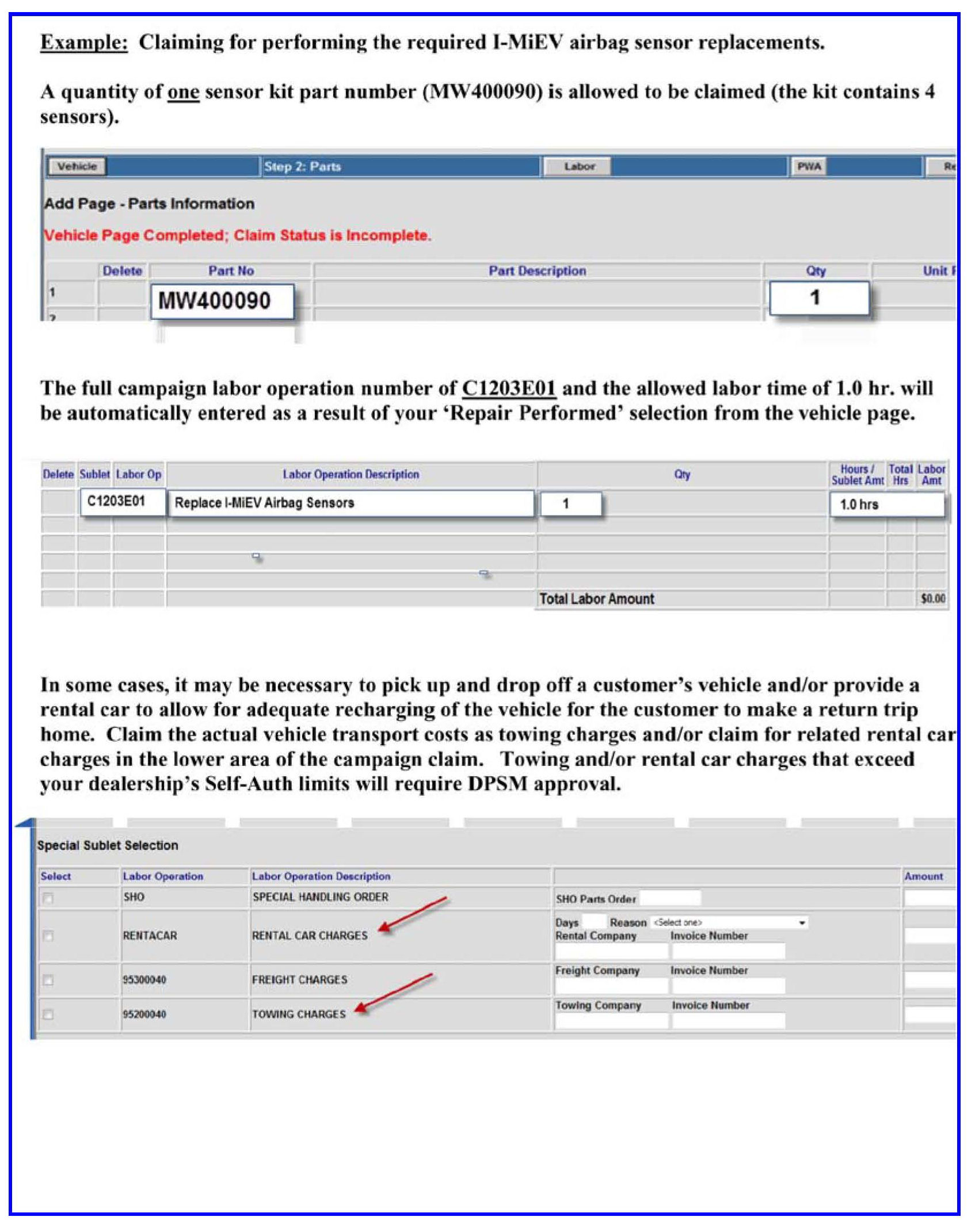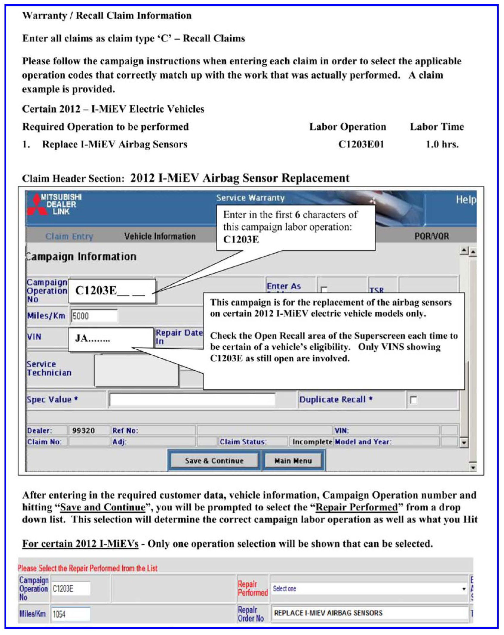 Dealers will automatically receive an initial quantity of parts to complete the recall on in-stock dealer units, shipped the week of August 13, 2012. We will also be contacting owners directly to coordinate their return to a local certified i-MiEV dealer. If we can confirm their return, we will ship the necessary repair kit(s) to the dealer automatically.
