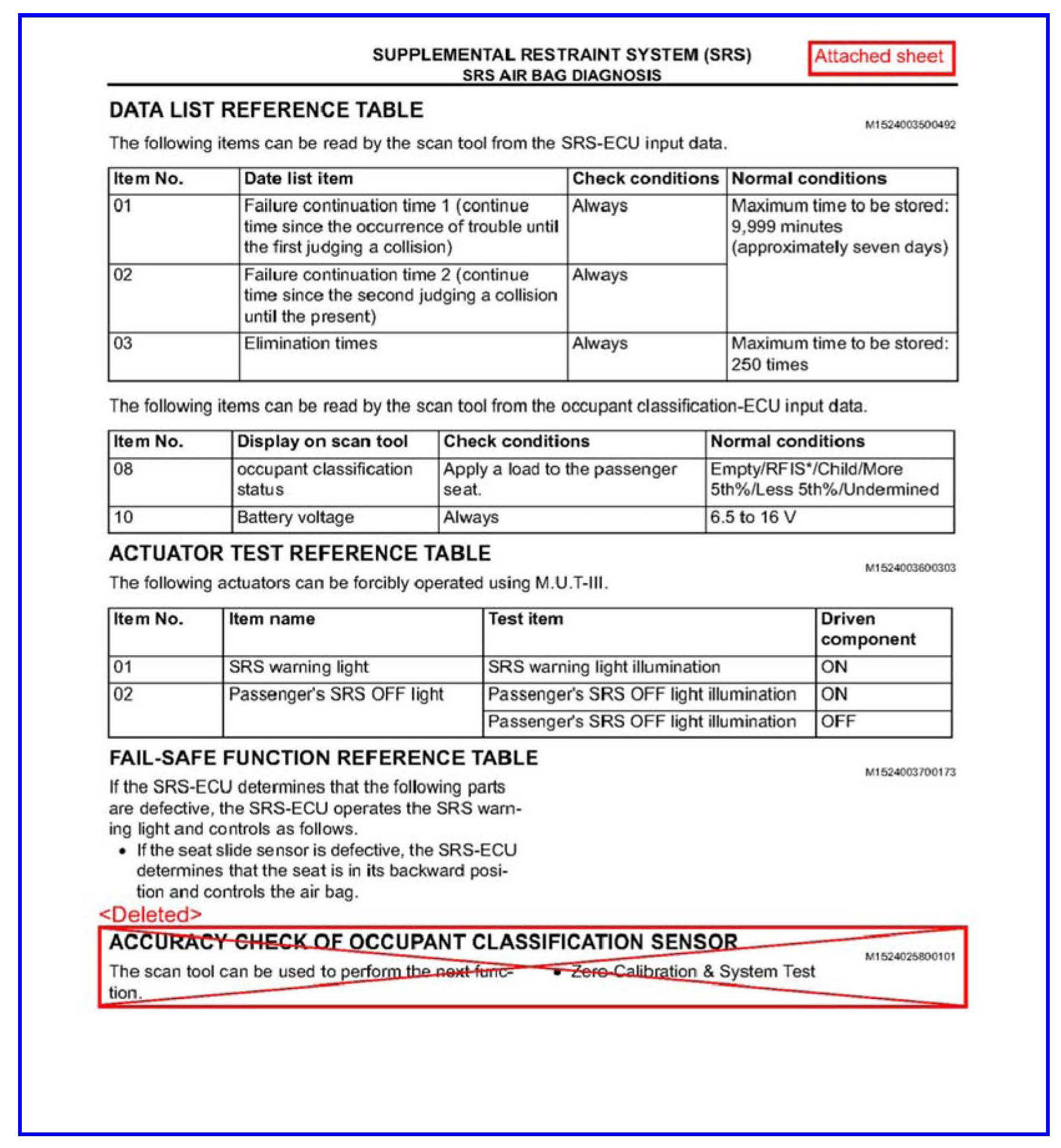The "Accuracy Check of Occupancy Classification Sensor" is deleted for affected vehicles. This TSB contains the corrected information.