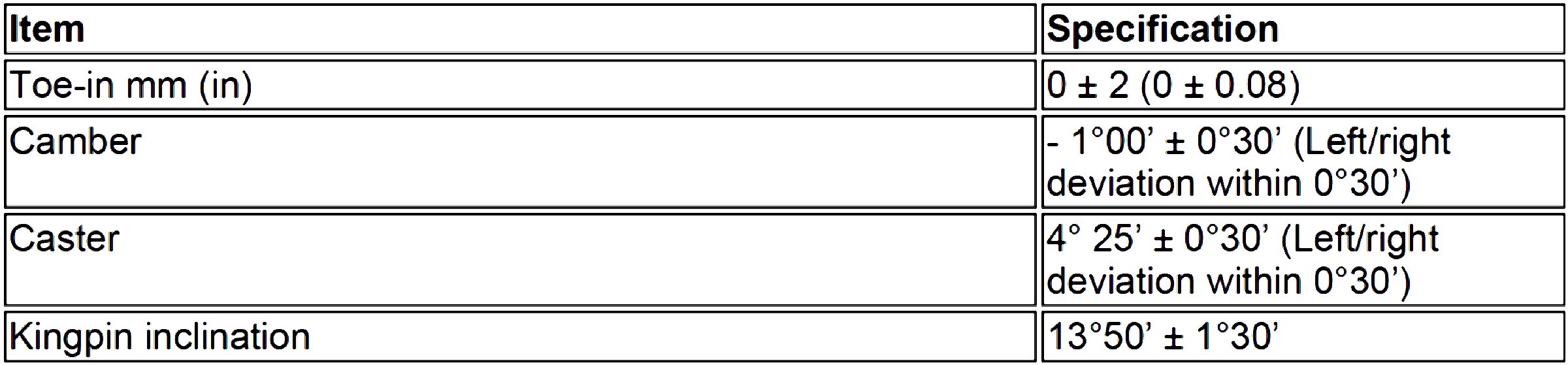 Wheel Alignment Specifications