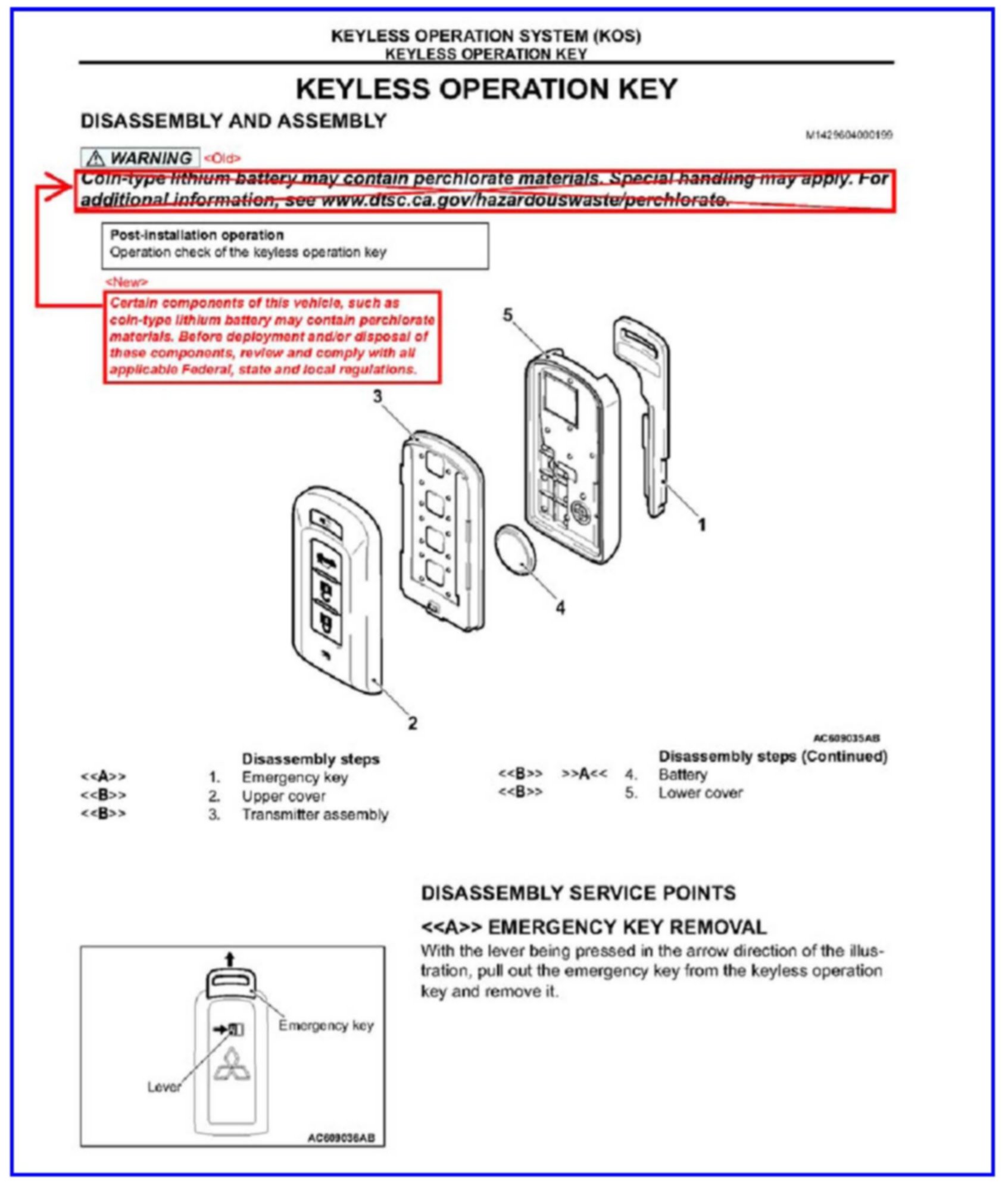 Apply this page to all Affected Service Manuals: Group 42B - Keyless Operation System (KOS) - Keyless Operation Key - Disassembly and Assembly