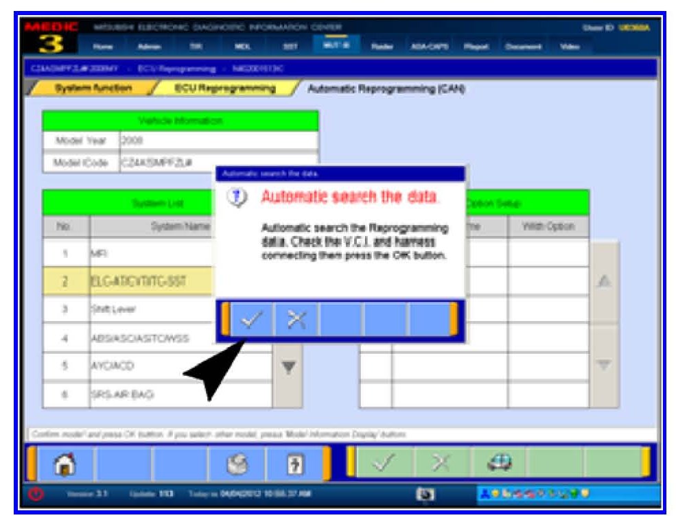 5. Click the check mark to begin an automatic search for reprogramming data.
