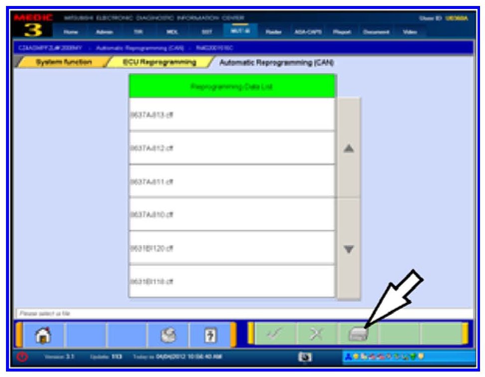 21. Repair and programming procedures for a vehicles using software version 001 are complete. Turn the ignition to the LOCK position disconnect the MUT-III and the battery charger and proceed to the Quality Control Checklist to verify repairs.