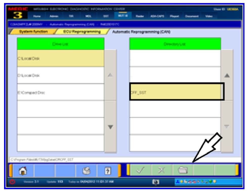 11. Select MUT3 and click the file Folder icon at the bottom of the screen.