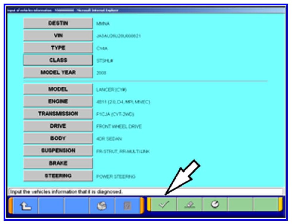 7. Click on the icon in the lower RH corner of the screen to have MUT-III automatically read the VIN. If a message appears advising the VIN cannot be input automatically enter the 17 digit VIN.