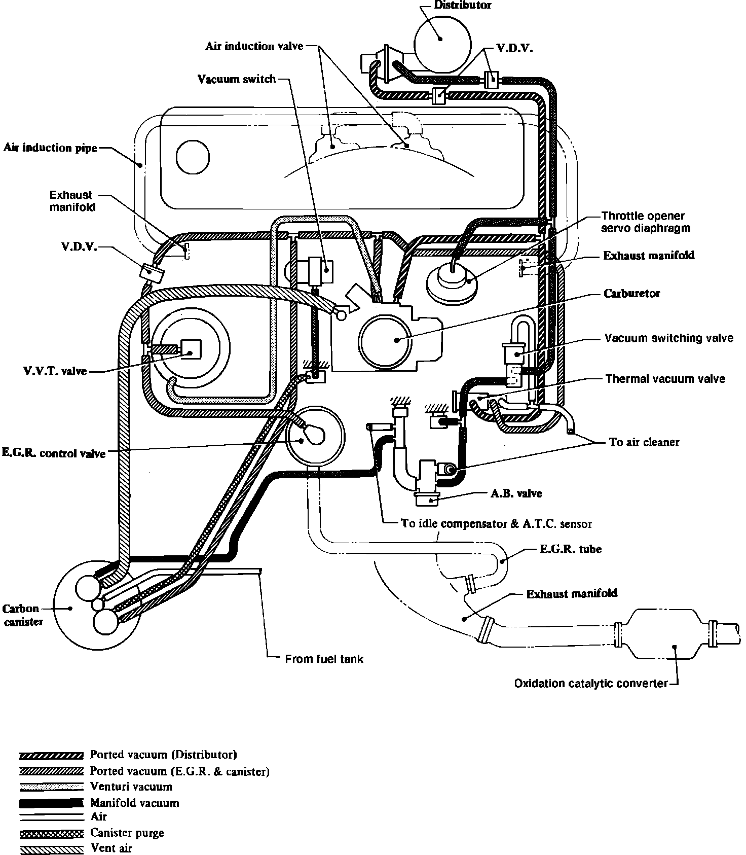 Fig. 2 Emission control system & engine compartment reference diagram.: