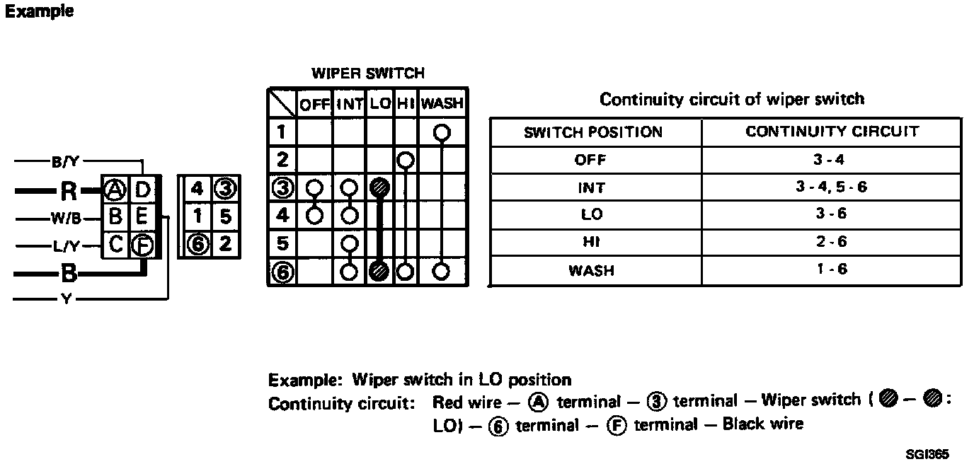 The continuity of the multiple switch is identified in the switch chart in wiring diagrams.