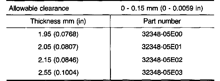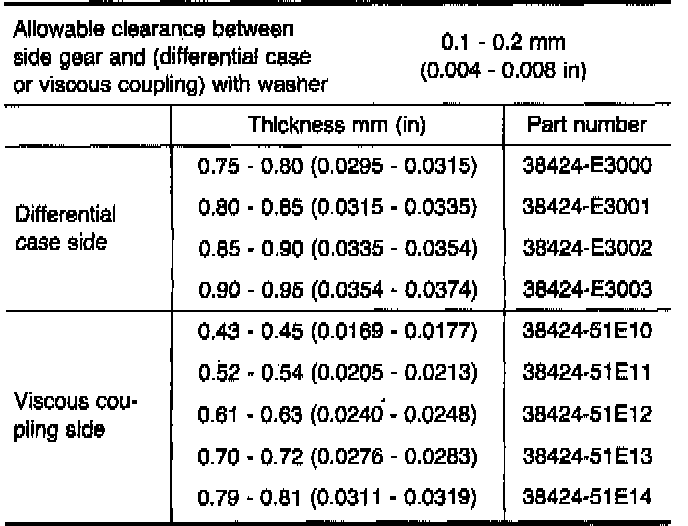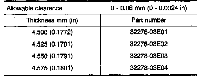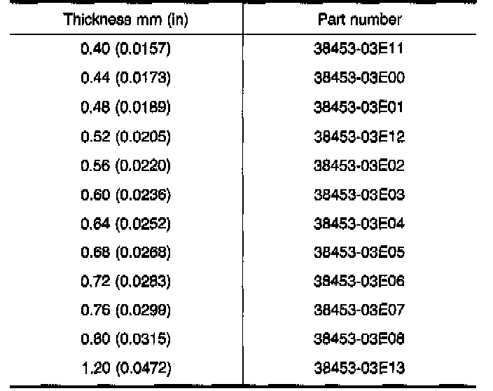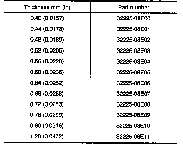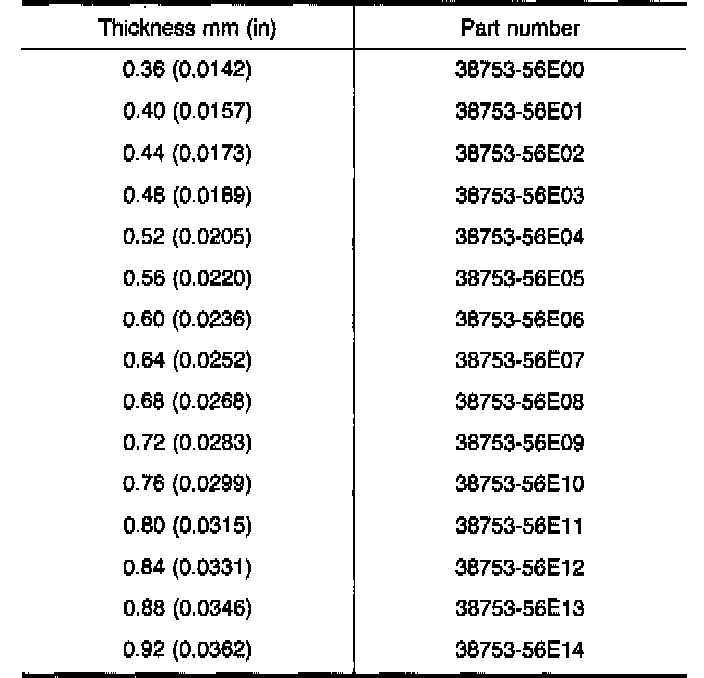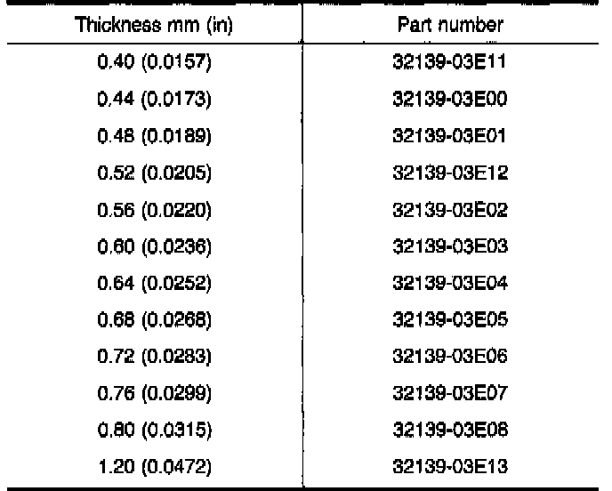 Table For Selecting Differential Side Bearing Adjusting Shims - RS5F50V: