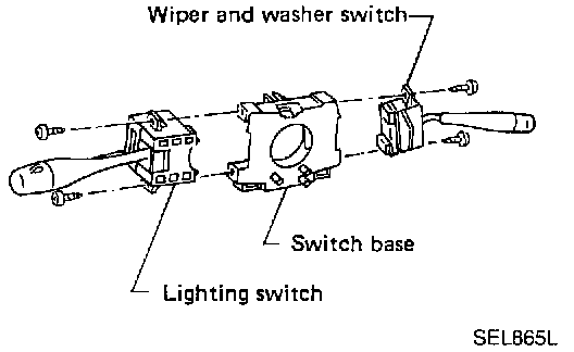 ^ To remove combination switch base, remove base attaching screw and turn after pushing on it.