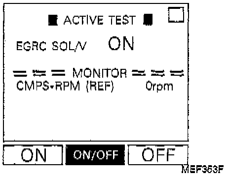 2. Perform "EGRC SOLENOID VALVE" in "ACTIVE TEST" mode with CONSULT and check the operating sound, according to ON/OFF switching.