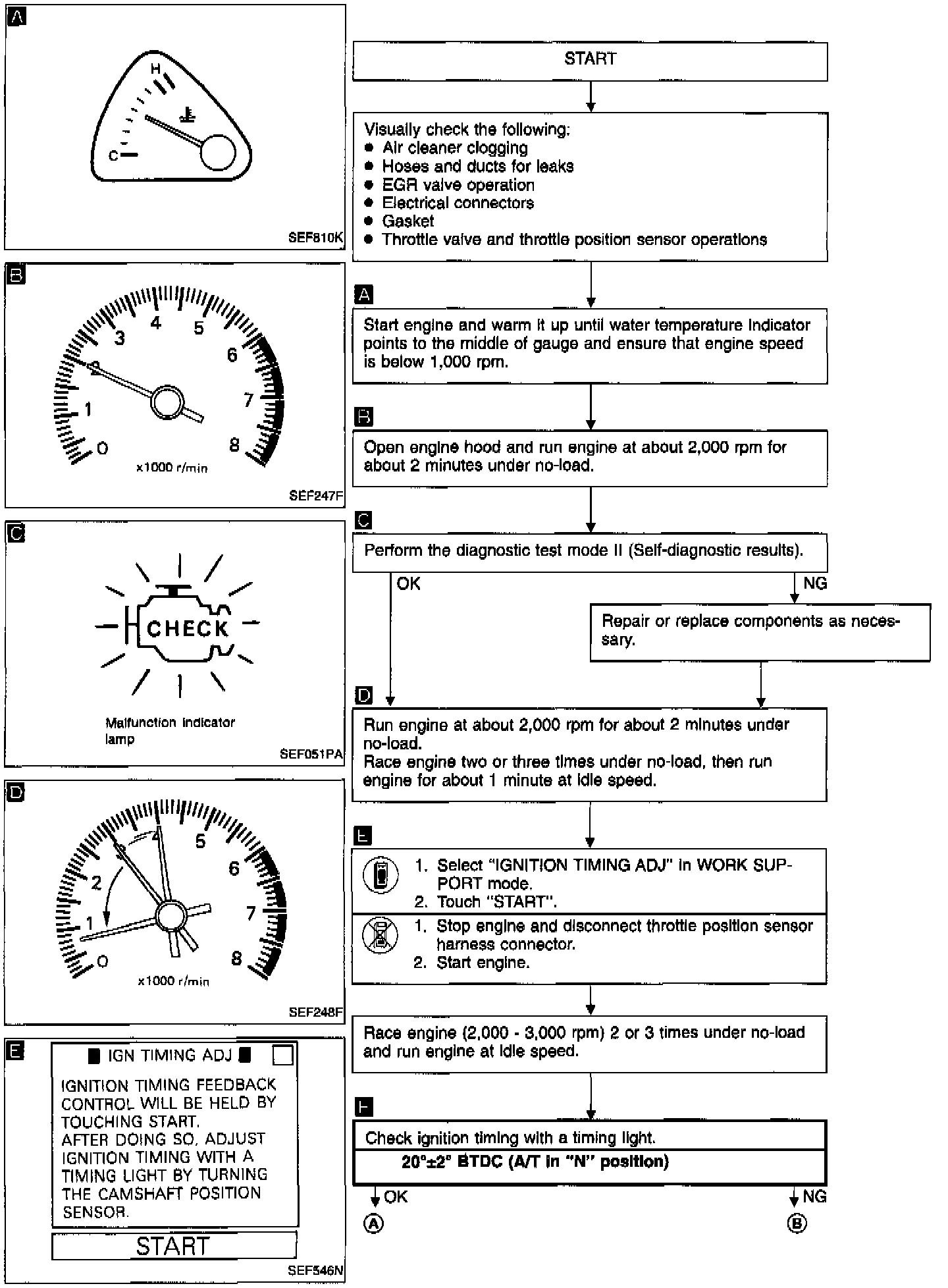 2. On models equipped with air conditioner, checks should be carried out while the air conditioner is "OFF".