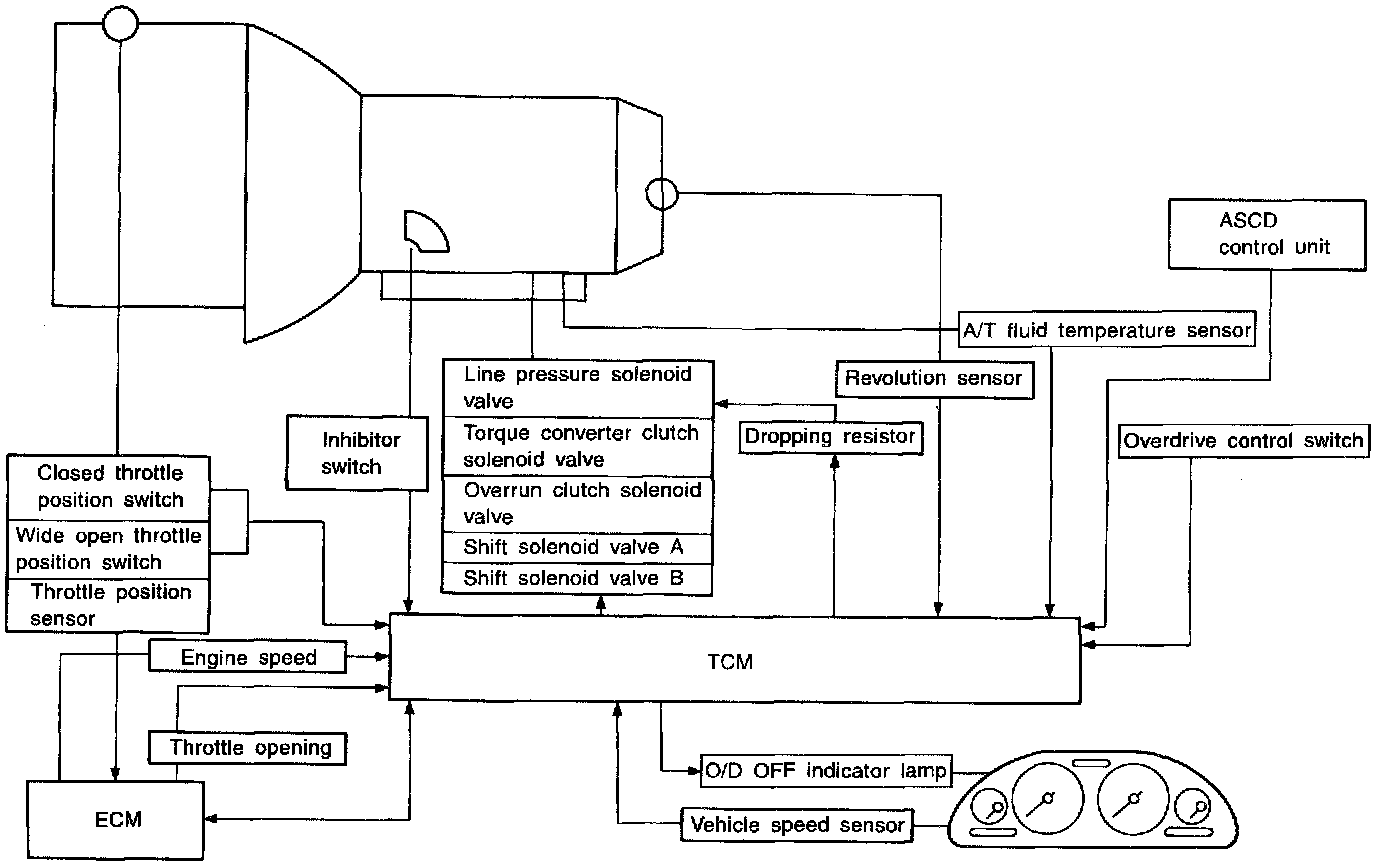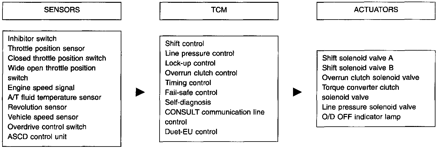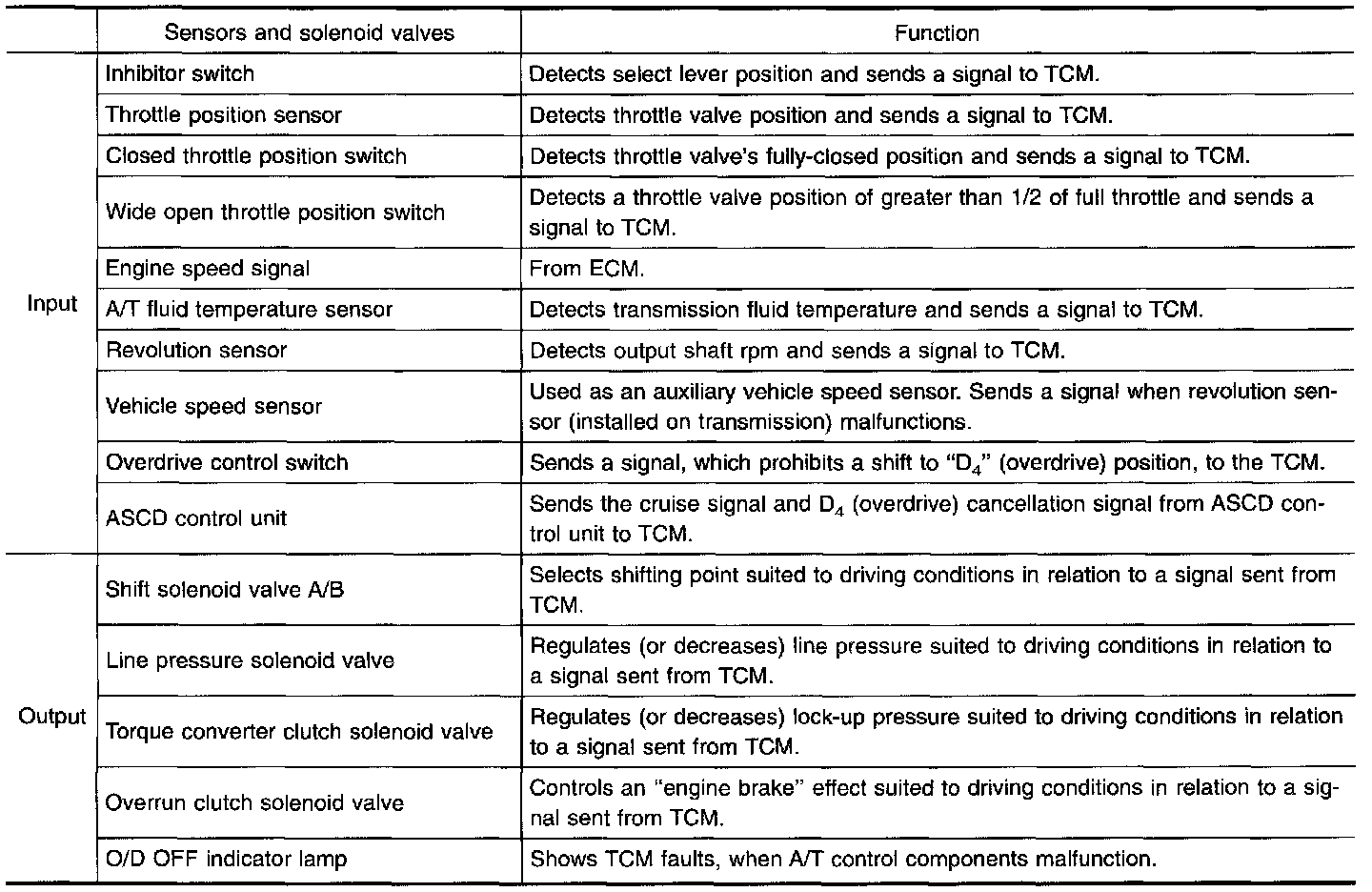 The automatic transaxle senses vehicle operating conditions through various sensors. It always controls the optimum shaft position and reduces shifting and lock-up shocks.