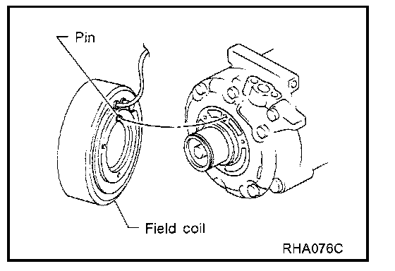 When replacing compressor clutch assembly, always conduct the break-in operation. This is done by engaging and disengaging the clutch about 30 times. Break-in operation raises the level of transmitted torque.