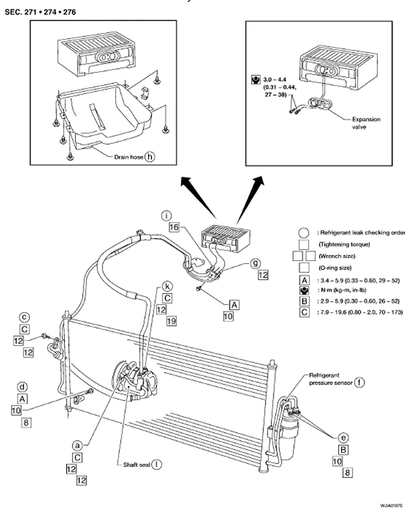 The receiver/drier (liquid tank) is built into the condensor on most later model Nissan vehicles with a replaceable filter