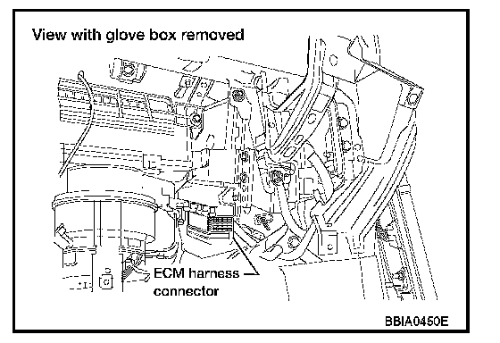 1. ECM is located behind the glove box. For this inspection, remove glove box.