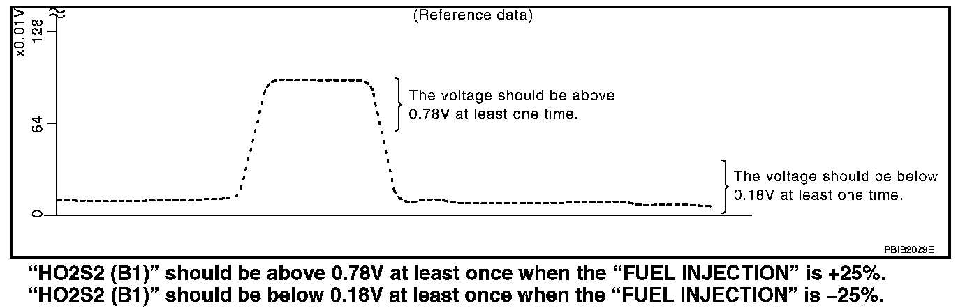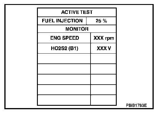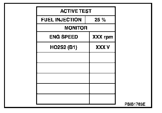 6. Check "HO2S2 (B1)" at idle speed when adjusting "FUEL INJECTION" to -25%..