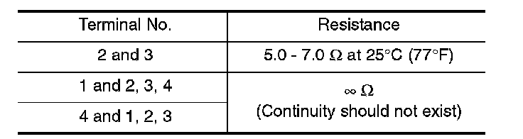 Check continuity between terminals 3 and 1, 2, 5, 6, terminals 4 and 1, 2, 5, 6.