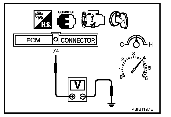 5. Set voltmeter probes between ECM terminal 74 (HO2S2 signal) and engine ground.