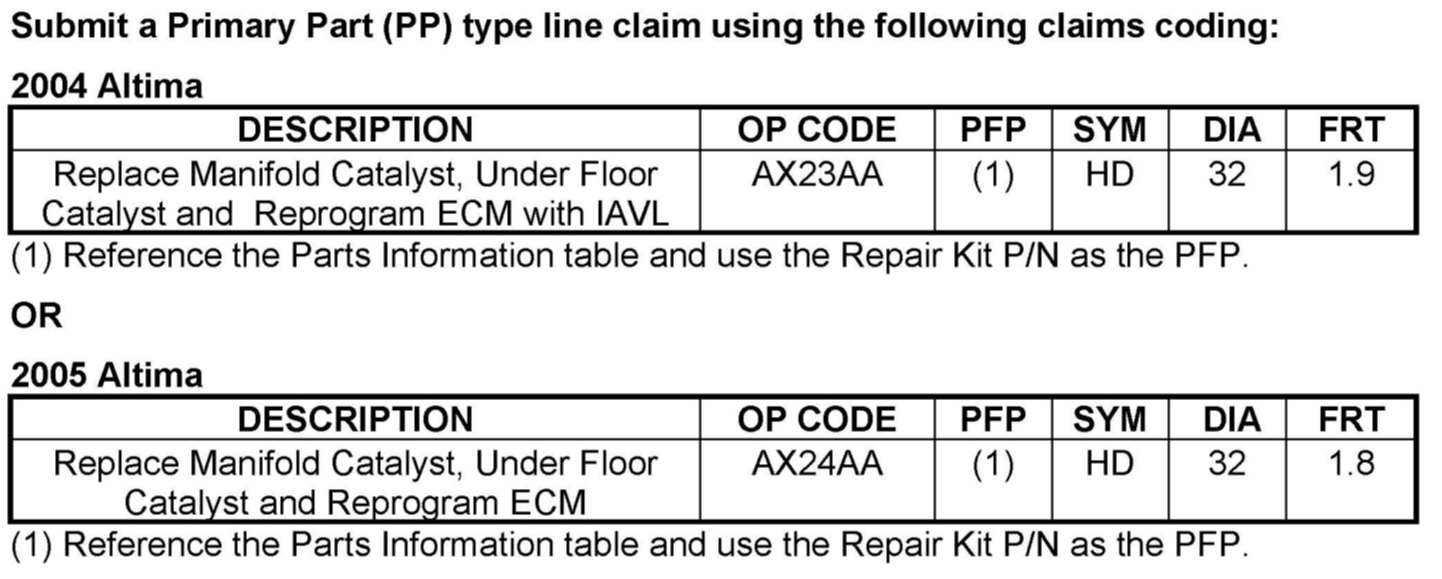 2004 - 2005 ALTIMA; DTC P0420 WITH SULEV QR25DE ENGINE