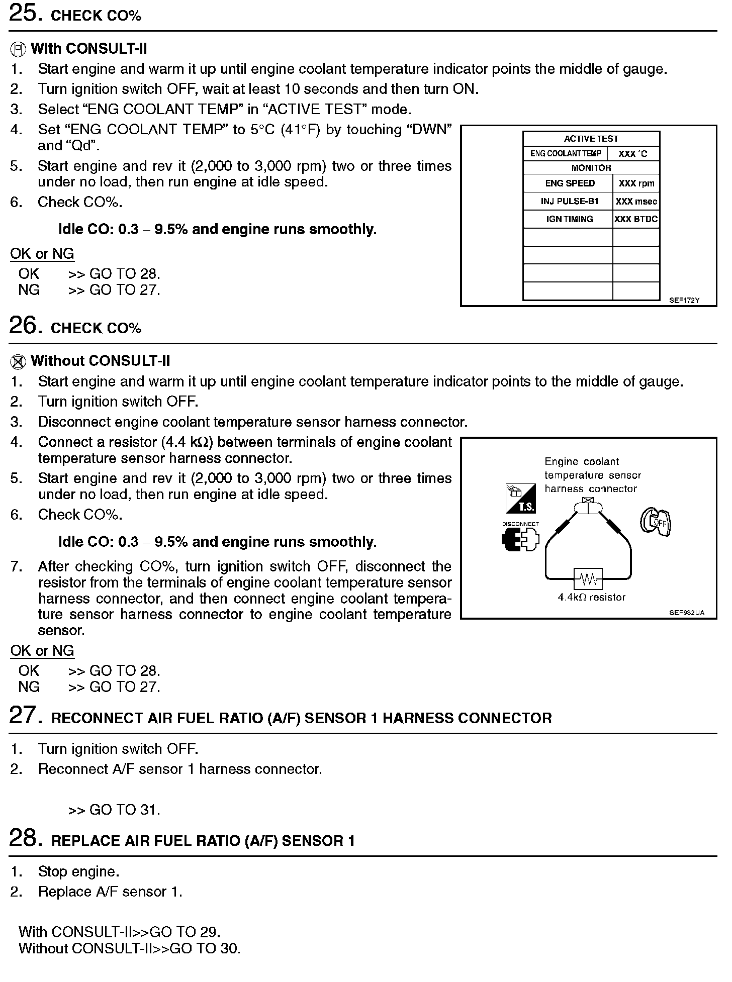 2. On air conditioner equipped models, checks should be carried out while the air conditioner is OFF.