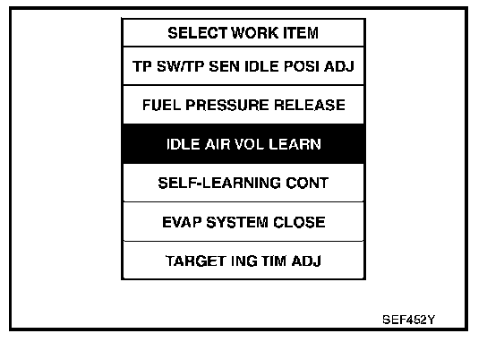 5. Select "IDLE AIR VOL LEARN" in "WORK SUPPORT" mode.