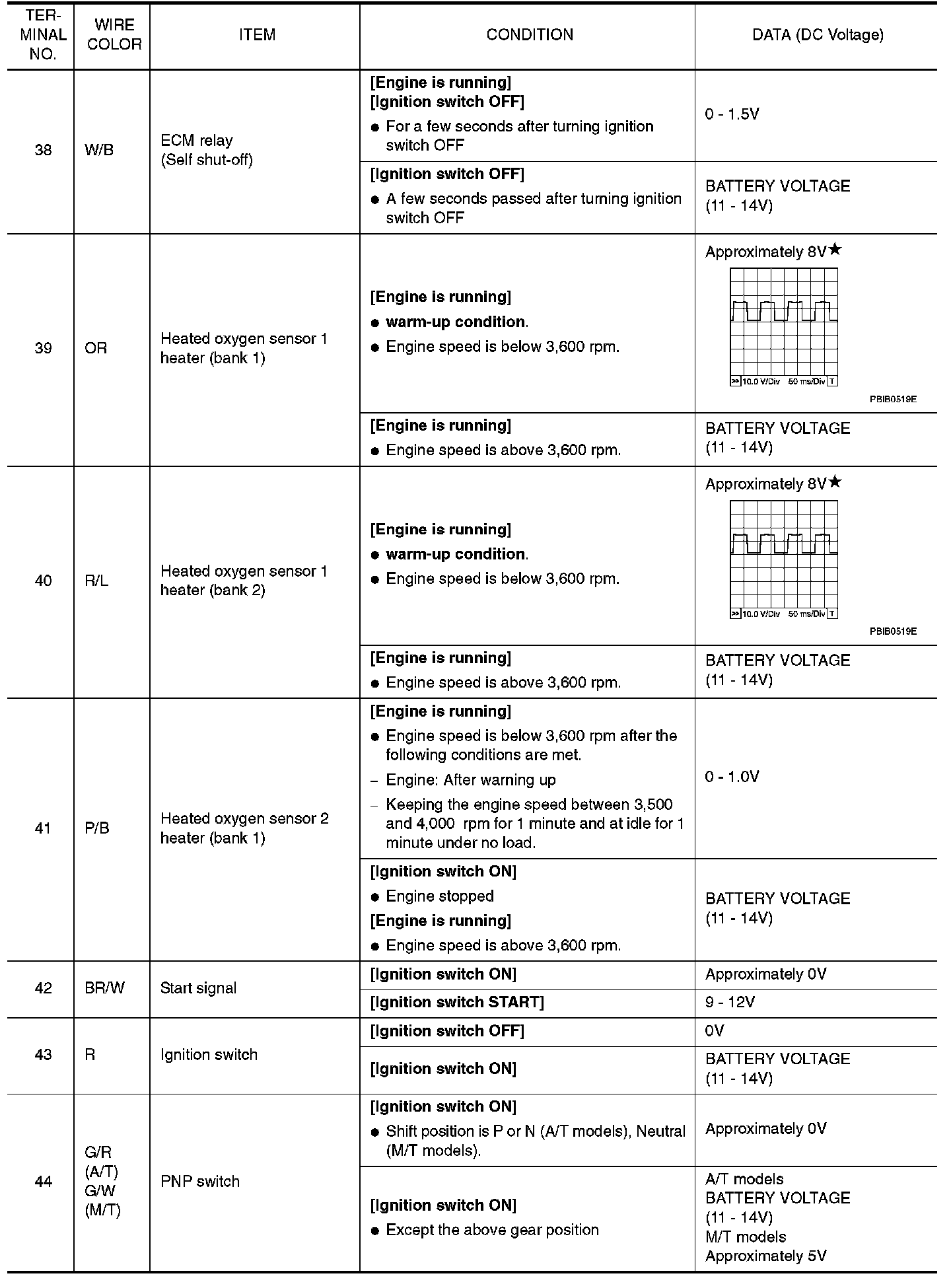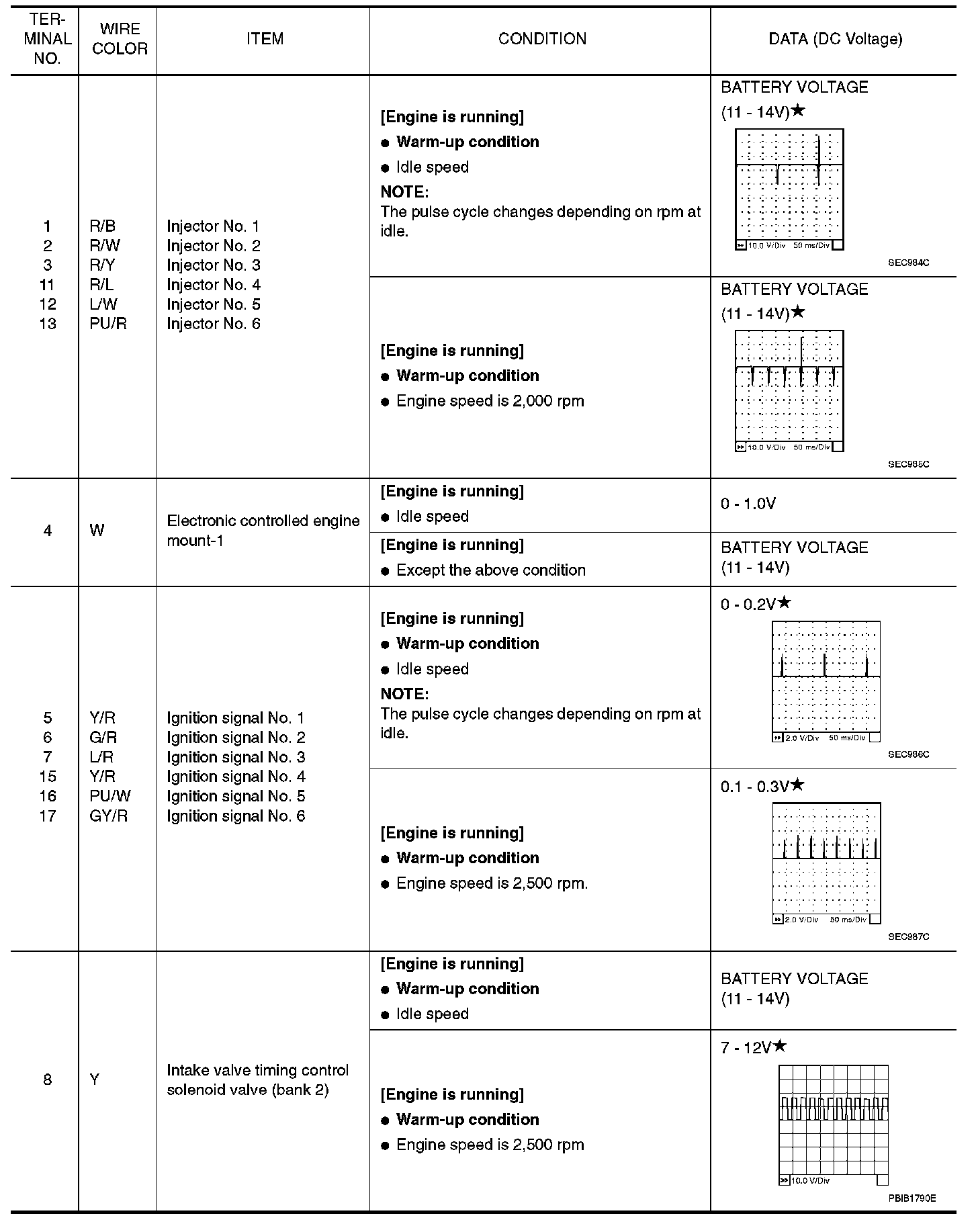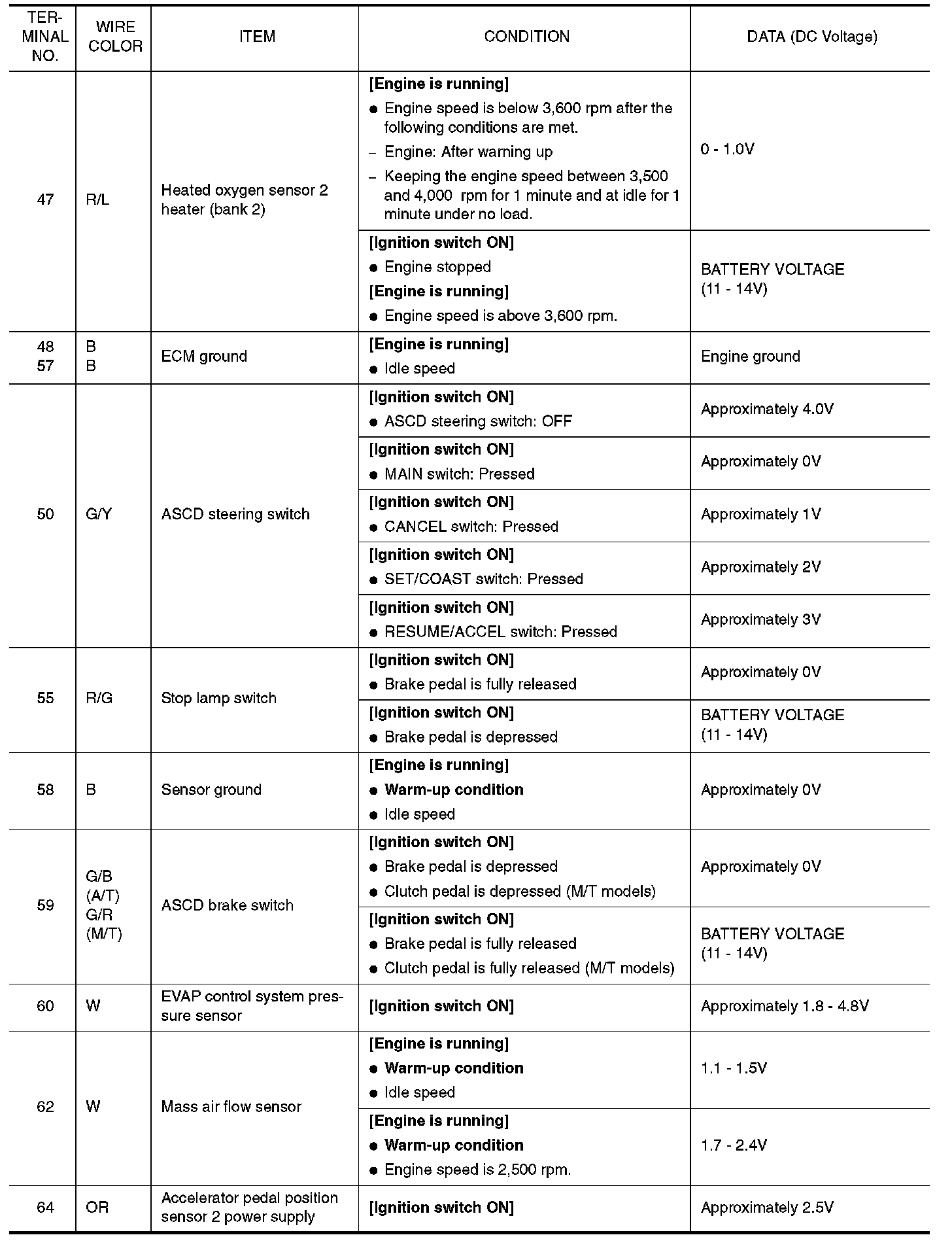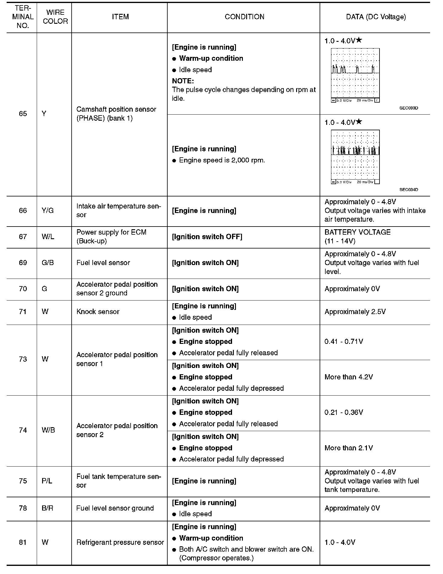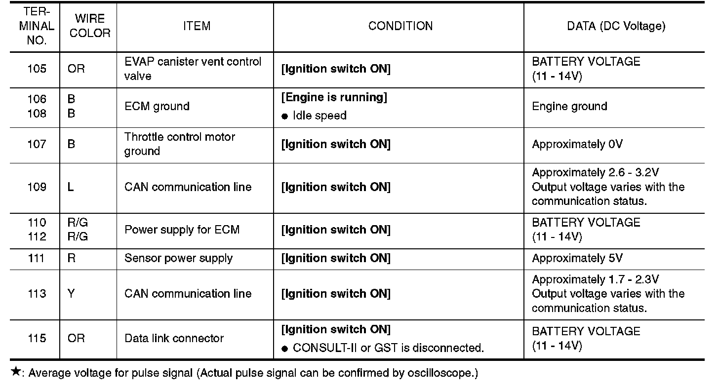ECM Harness Connector Terminal Layout: