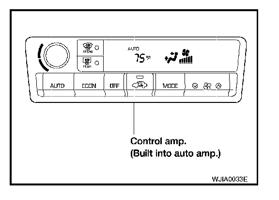 The auto amplifier has a built-in microcomputer which processes information sent from various sensors needed for air conditioner operation. The air mix door motor, mode door motor, intake door motor, blower motor and compressor are then controlled.