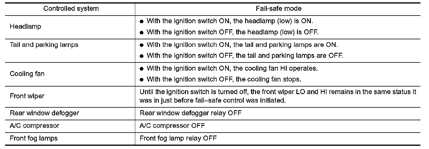 - Operation of control parts by IPDM E/R during fail-safe mode is as shown.