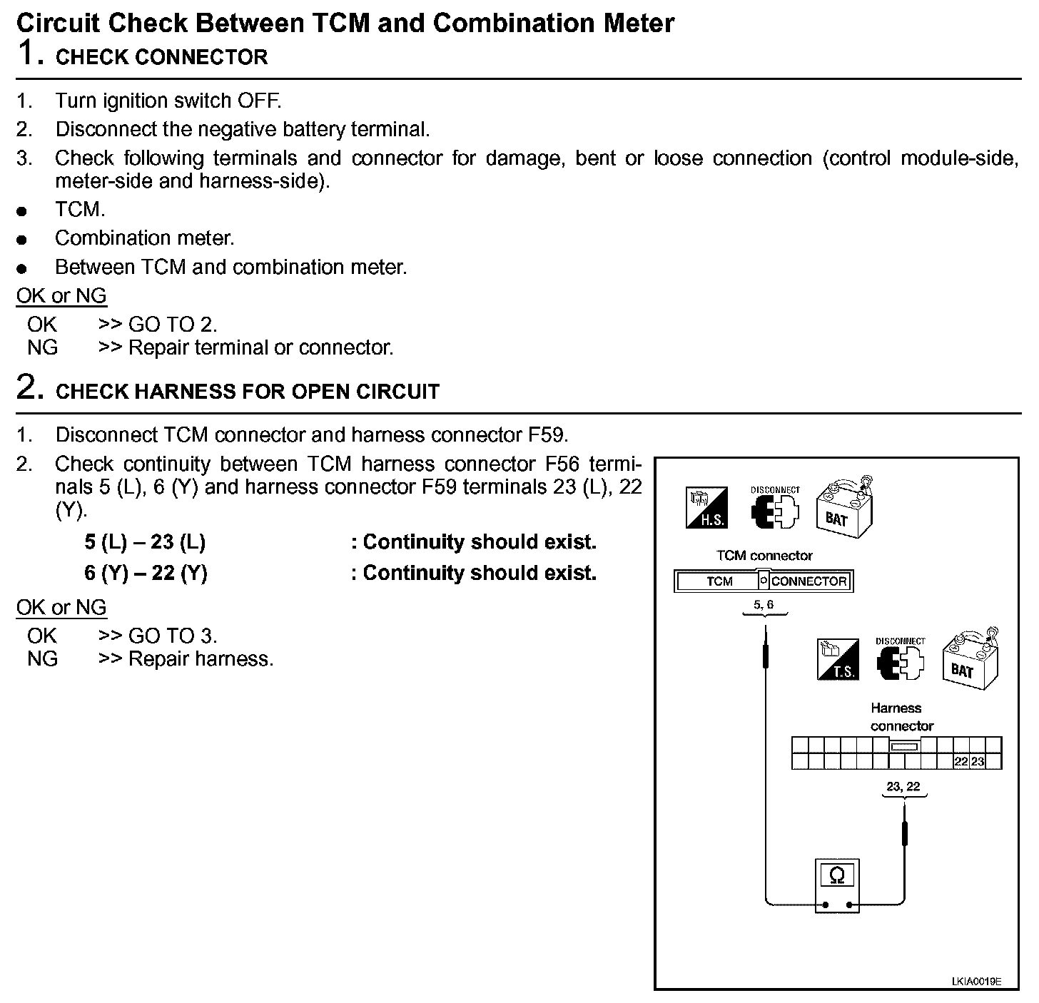 Circuit Check Between TCM And Combination Meter (Steps 1 - 2):