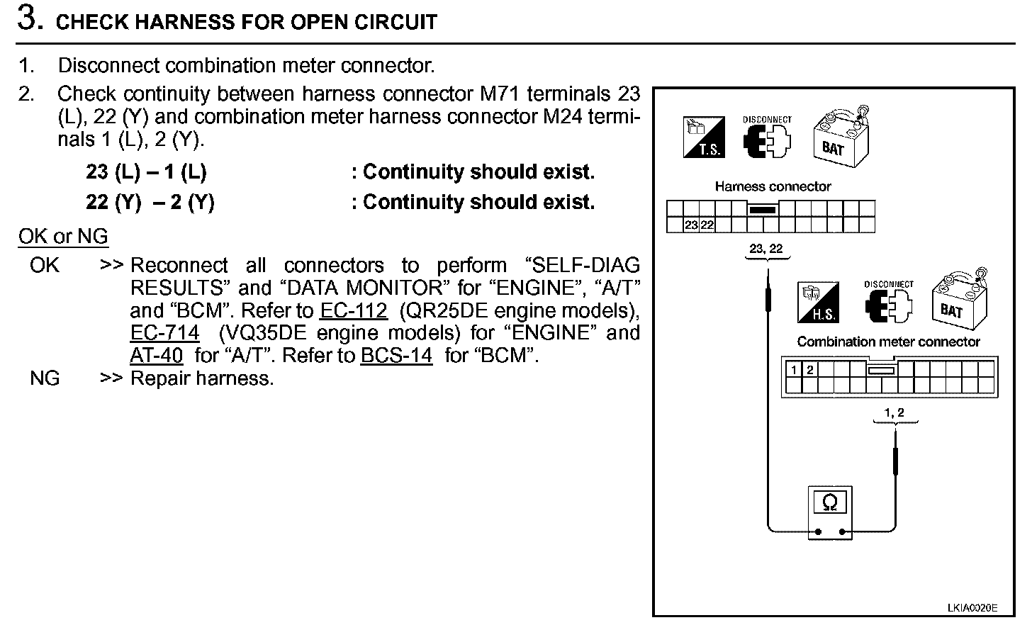 Circuit Check Between TCM And Combination Meter (Step 3):