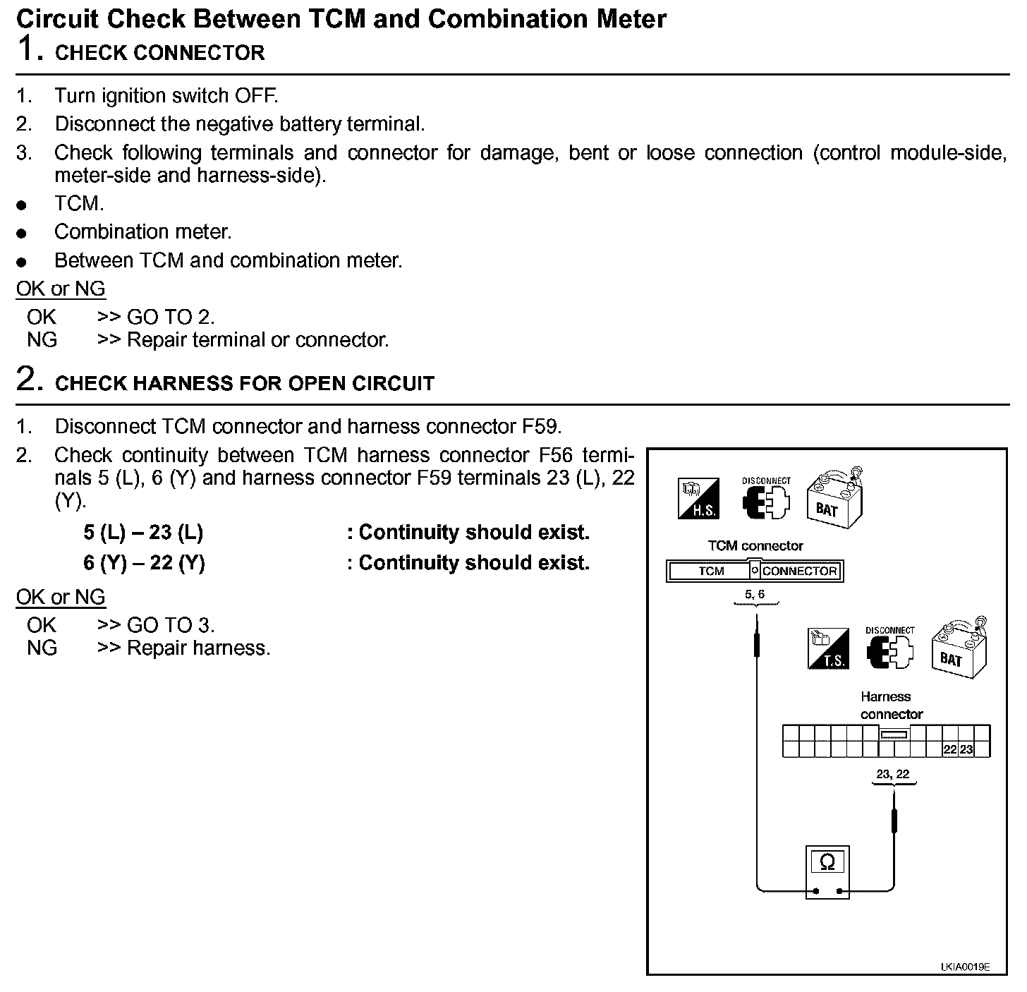 Circuit Check Between TCM And Combination Meter (Steps 1 - 2):