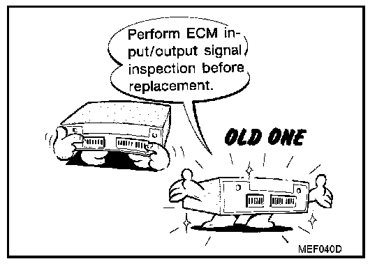 - Before replacing ECM, perform ECM Terminals and Reference Value inspection and make sure ECM functions properly.