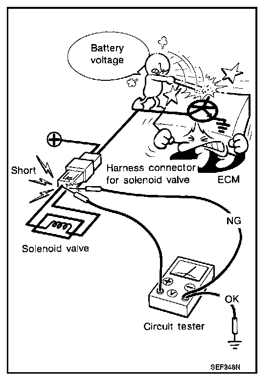 - Do not use ECM ground terminals when measuring input/ output voltage. Doing so may result in damage to the ECM's transistor. Use a ground other than ECM terminals, such as the ground.