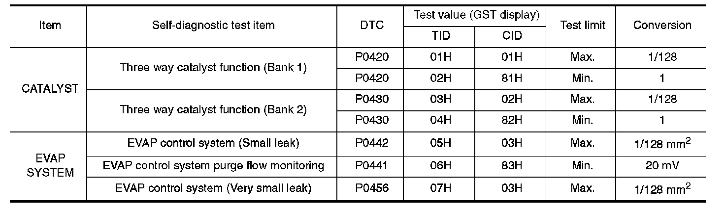 TEST VALUE AND TEST LIMIT (GST ONLY - NOT APPLICABLE TO CONSULT-II)Part 1: