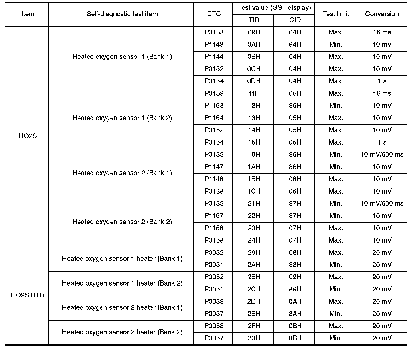 The test value is a parameter used to determine whether a system/circuit diagnostic test is "OK" or "NG" while being monitored by the ECM during self-diagnosis. The test limit is a reference value which is specified as the maximum or minimum value and is compared with the test value being monitored.