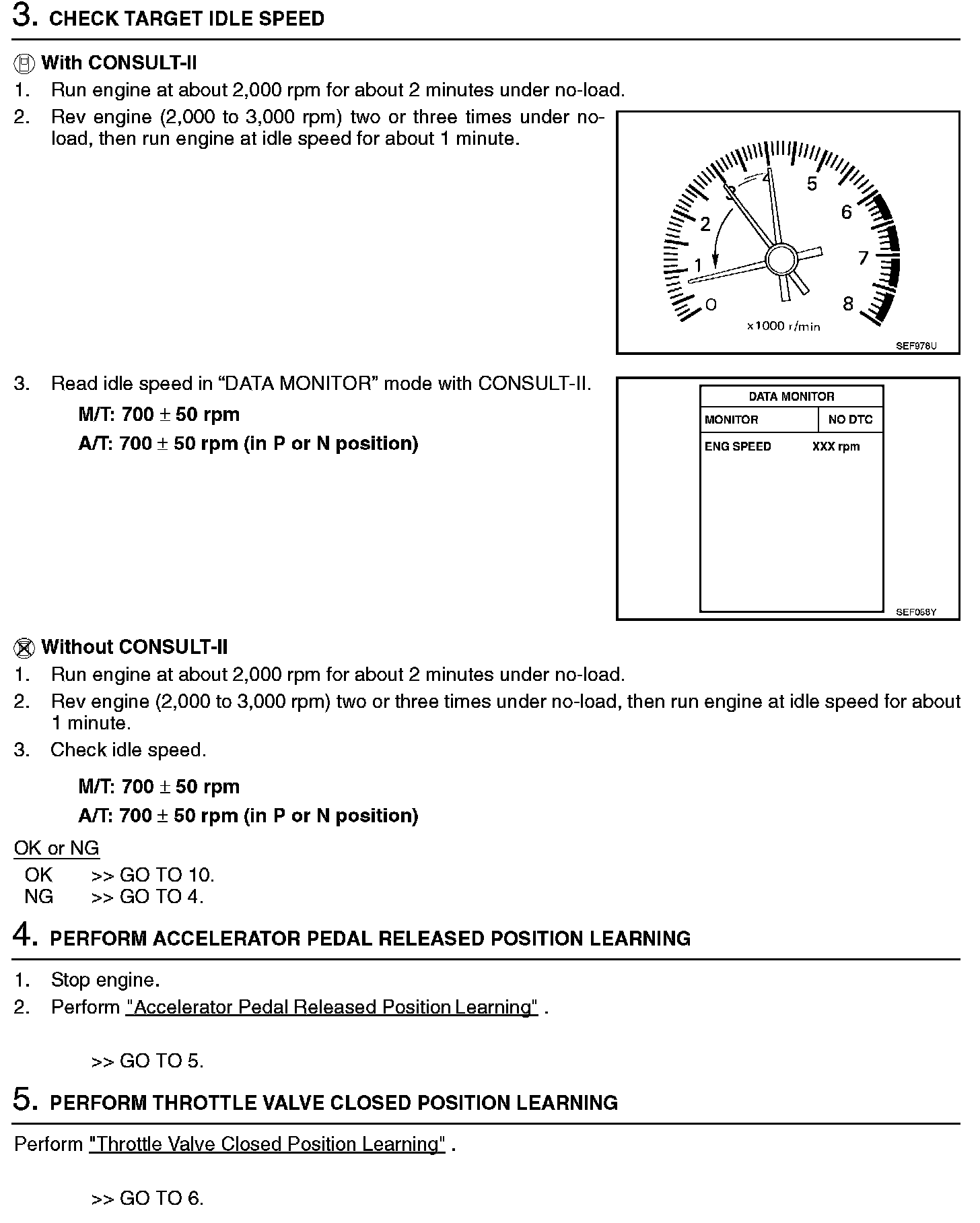 3. On automatic transmission equipped models, when checking idle rpm, ignition timing and mixture ratio, checks should be carried out while shift lever is in N position.