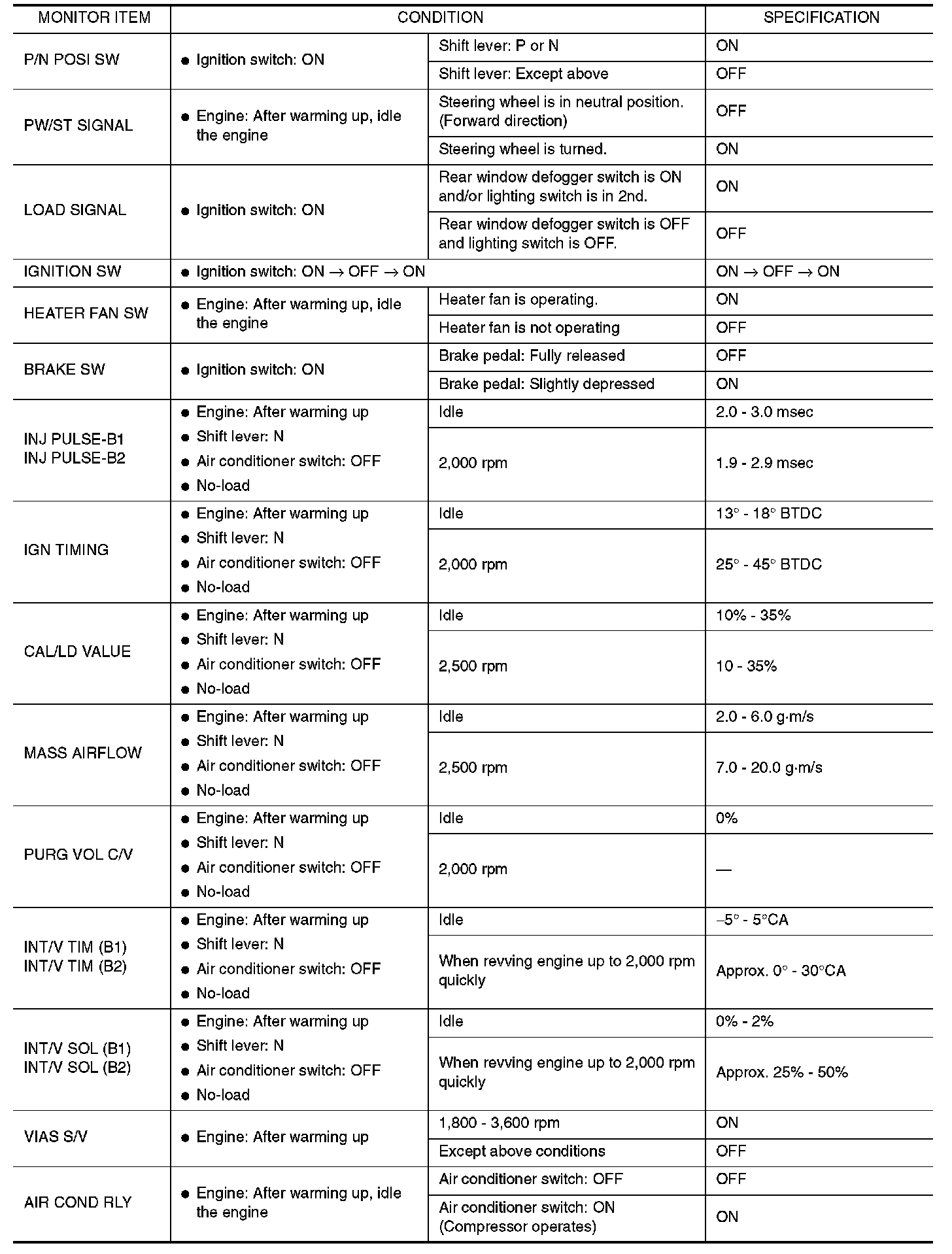 CONSULT-II Reference Value In Data Monitor Part 2: