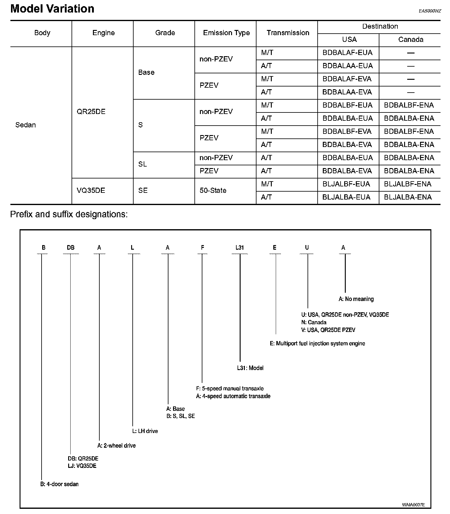 IDENTIFICATION INFORMATIONModel Variation