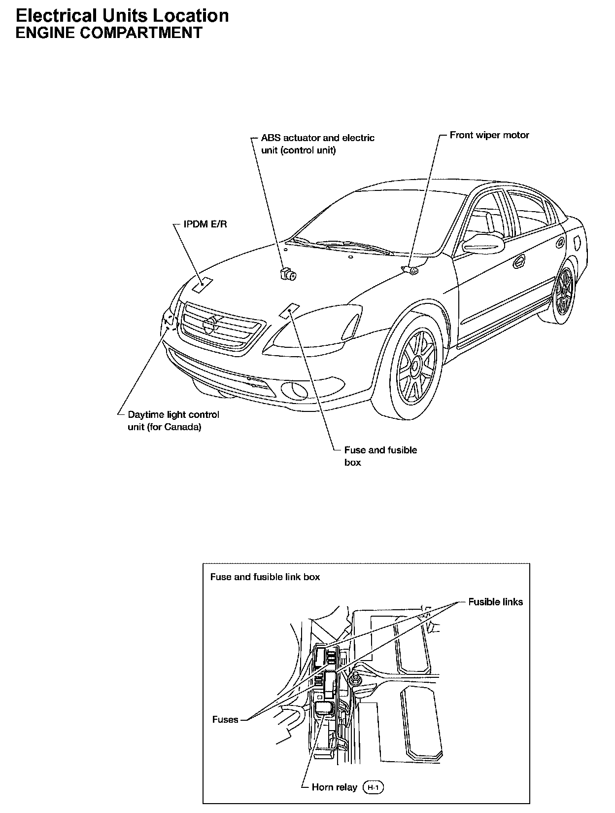 Engine Compartment Electrical Units Locations: