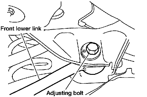 - If camber is not within specification, adjust by turning the adjusting bolts in the same direction.
