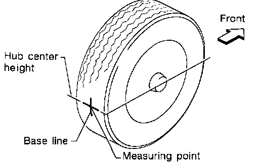 3. Put a mark on the base line of the tread (rear side) of both tires at the same height as the hub center as shown. These marks are the measuring points.