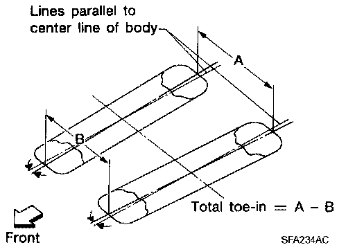 Measure toe-in using the following procedure. If out of specification, inspect and replace any damaged or worn rear suspension components.