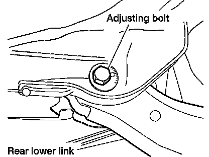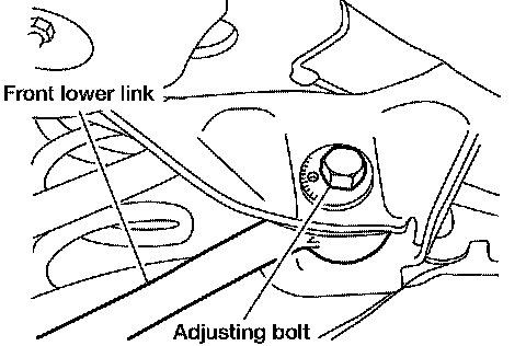 NOTE: Toe-in changes about 1.5 mm (0.059 inch) (one side) with each graduation of the adjusting bolt.