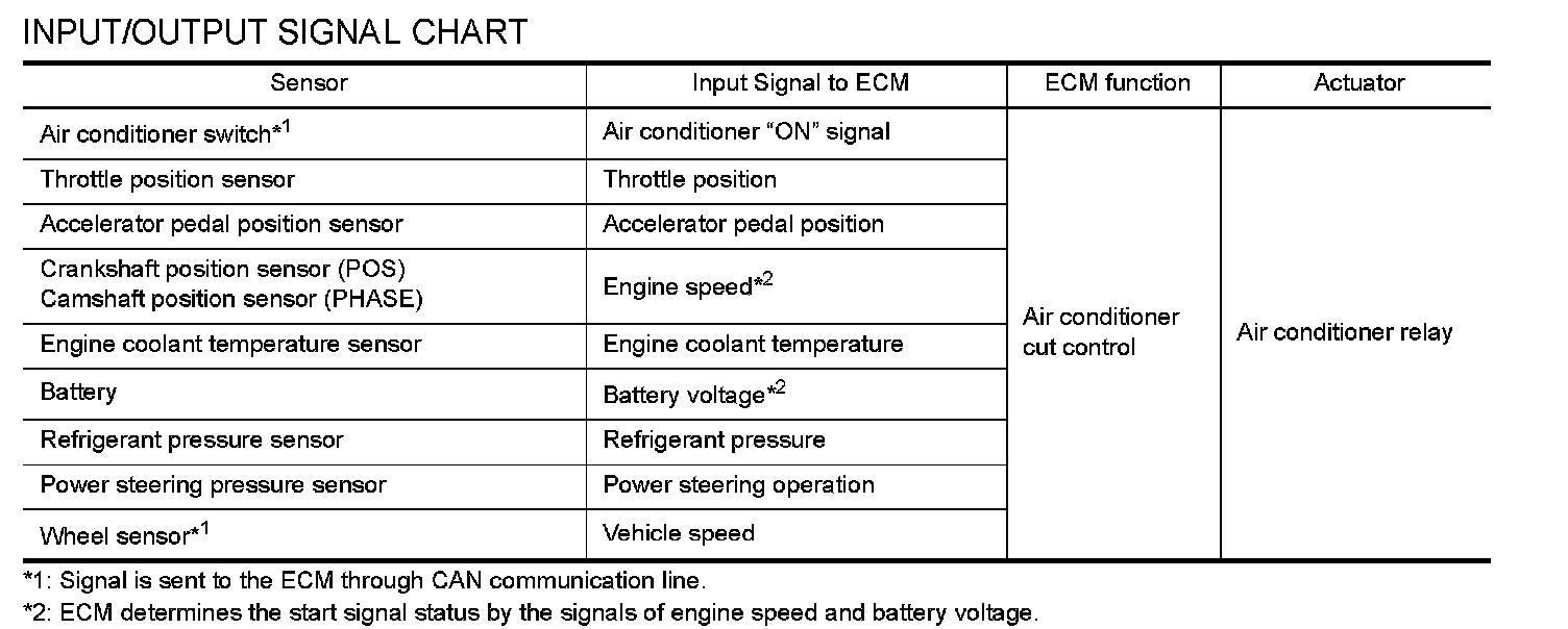 Air Conditioning Cut ControlInput/Output Signal Chart: