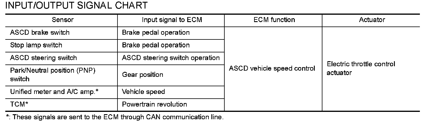 - More than 2 switches at ASCD steering switch are depressed at the same time (Set speed will be cleared)