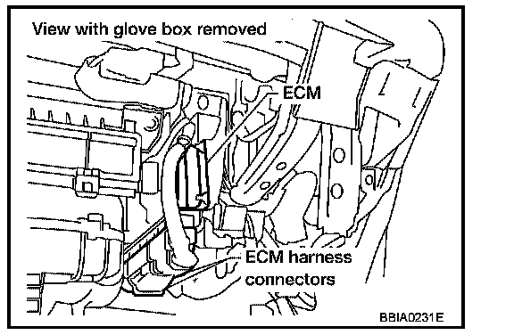 1. ECM is located behind the glove box. For this inspection, remove glove box.