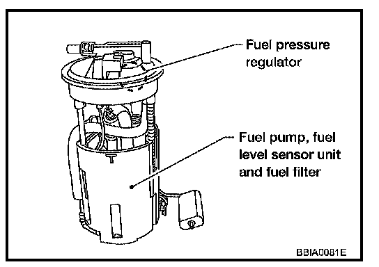 The fuel level sensor is mounted in the fuel level sensor unit. The sensor detects a fuel level in the fuel tank and transmits a signal to the unified meter and A/C amp. The unified meter and A/C amp. sends the fuel level sensor signal to the ECM through CAN communication line.