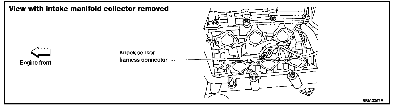 The knock sensor is attached to the cylinder block. It senses engine knocking using a piezoelectric element. A knocking vibration from the cylinder block is sensed as vibrational pressure. This pressure is converted into a voltage signal and sent to the ECM.