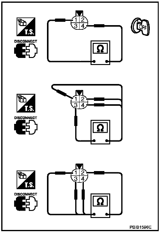 Check continuity between terminals 3 and 1, 2, 5, 6, terminals 4 and 1, 2, 5, 6.